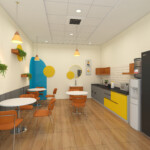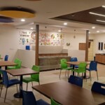 A modern, multi-level office space in Koramangala designed with minimal aesthetics and vibrant details — featuring collaborative work zones, a dynamic training center, and a warm, inviting cafeteria.